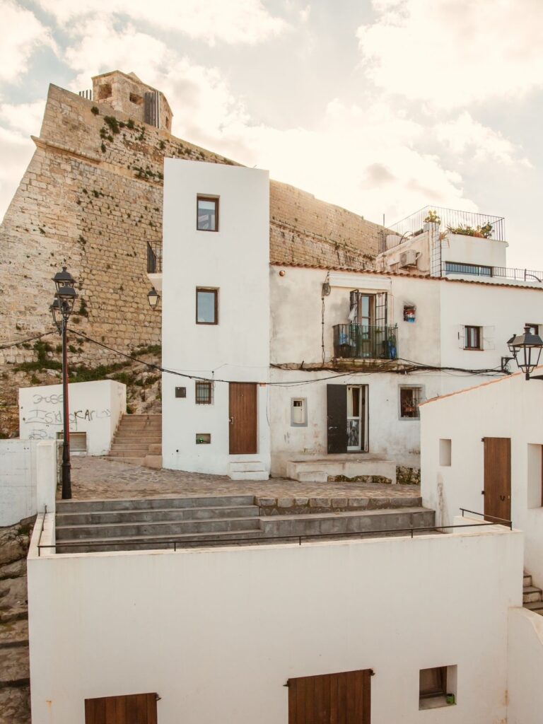 La vivienda, situada en la calle Retir, se eleva sobre el nivel de la calle mediante una pequeña escalinata. Su fachada, blanca y serena, dialoga con el entorno popular del barrio.
